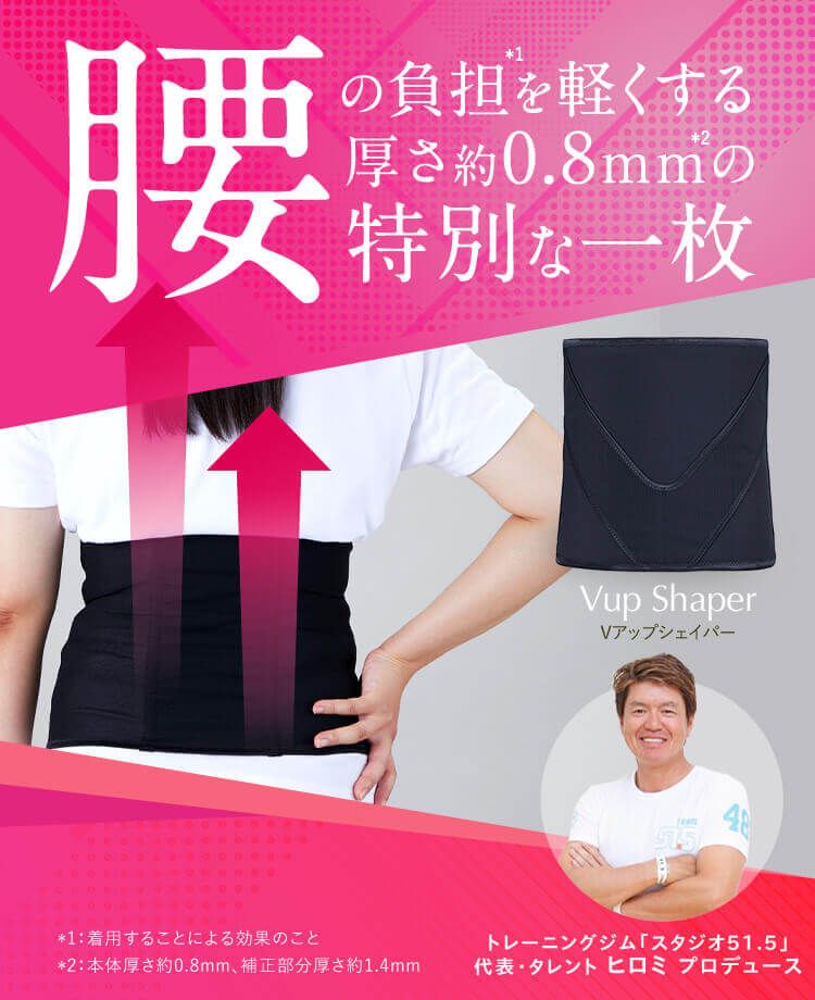 お腹シェイプのVアップシェイパーは、芸能人でもあり加圧トレーニングの資格を持っている『ヒロミ』さんが監修を務めた商品で、腹部に装着して使うボディシェイプ機器です。